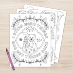 Playfully nurture your child's growth mindset with this set of 3 coloring pages. Each page features a PeaceMaker Pal with a unique affirming mantra your kids will love.