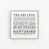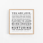 You are love. You are quite literally made out of love. The words on this letterpress poster express the guiding principles of Generation Mindful. If you want to inspire more little moments of love and connection, this inspiring manifesto poster is for you.