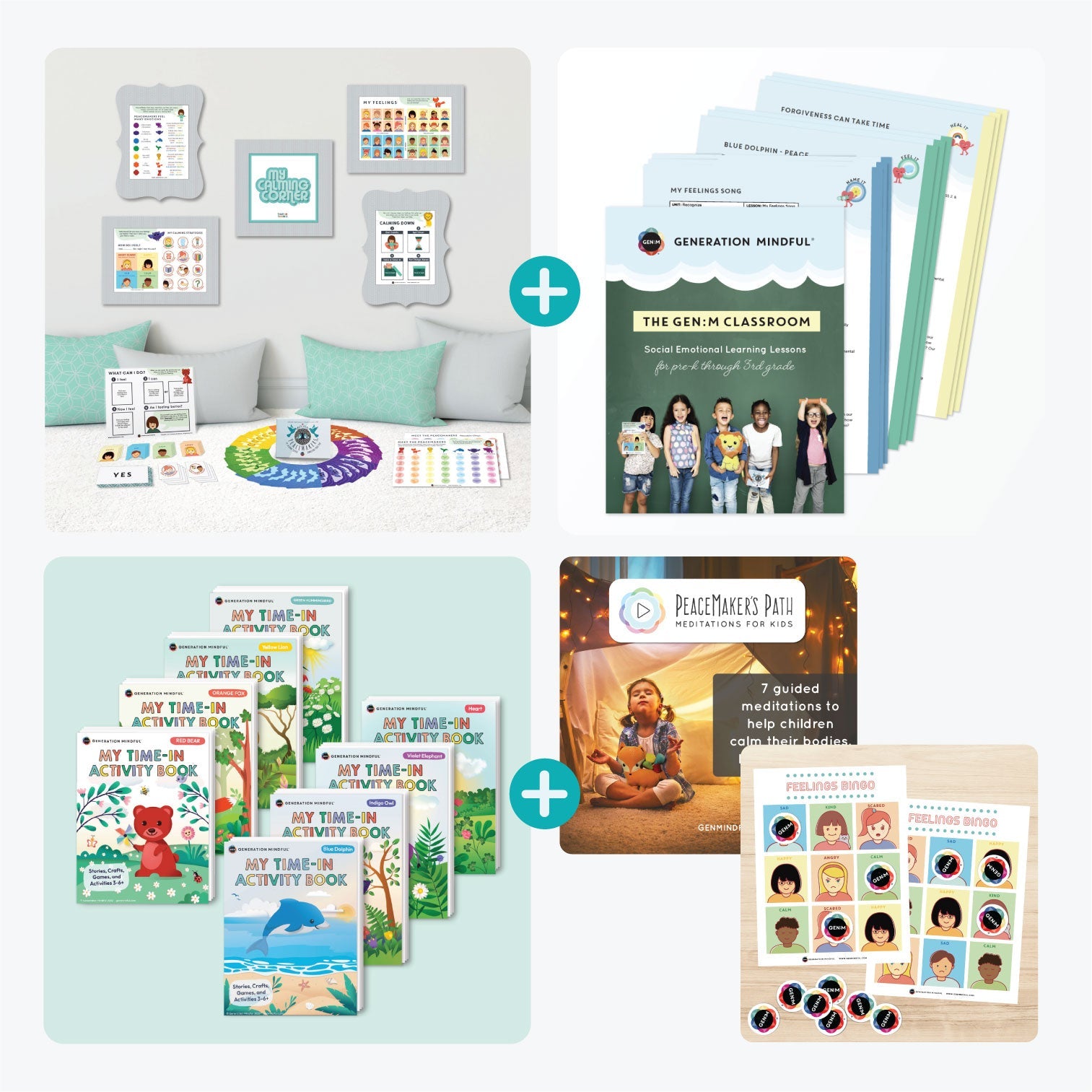 This Ready to Hang version of our Classroom ToolKit includes our best-selling Time-In ToolKit, Standards-Aligned Lesson Plans, Feelings Bingo, and Storytime Meditations at nearly 50% OFF Bundle Savings. Ideal for any preschool, early childhood, and/or daycare classroom.